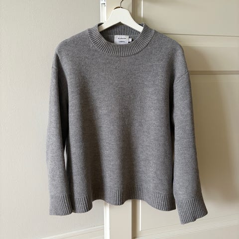 Almada Labelin harmaa Alma pooloneule, koko S. Materiaali merino ja kashmir. Ihana laadukas neule. Ei pesty, ei tahroja/hajuja tms., viikattuna säilytetty.