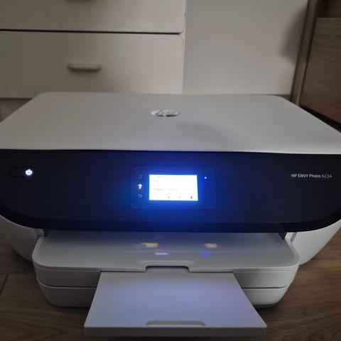 HP Envy 4504 monitoimitulostin, joka sisältää tulostus-, skannaus- ja kopiointiominaisuudet. Laite on musta ja harmaa, sopii kotikäyttöön tai pieneen toimistoon. Virtapiuha ei tule mukaan.