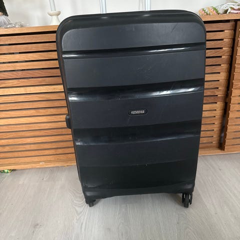 Muutaman kerran käytetty, lähes uudenveroinen laukku. Puhdas ja siisti sisäverhoilu. Mitat 55 × 40 x 20 cm. Teleskooppikahva, neljä pyörää, TSA-koodilukko.