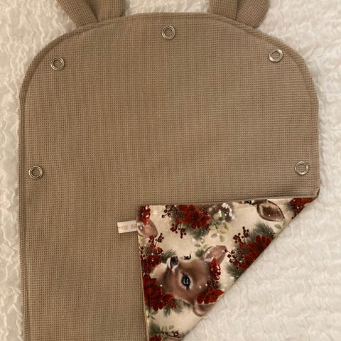 Vohvelikankaista ommeltu vauvan vaunuverhoja.