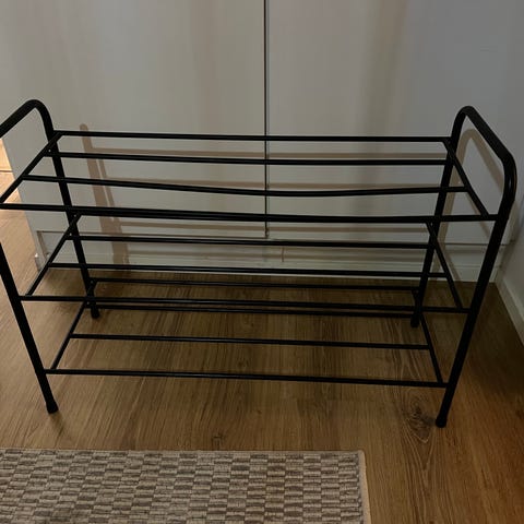Siisti kenkäteline missä on myös naulakko. Nopea purkaa, joten kuljetus on myös helppoa. Ovh 200€