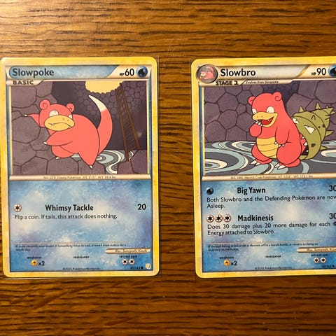 Pokémon Slowking ja Slowpoke keräilykortit.
