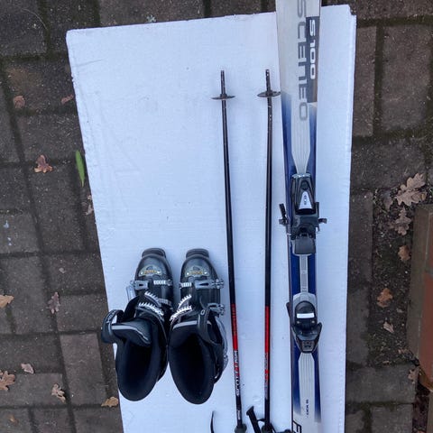 Elan-sukset, 176 cm. Sauvat. Dalbello-monot, koko 45. Giro-kypärä. Olleet satunnaisen laskettelijan käytössä n. 10 v.
