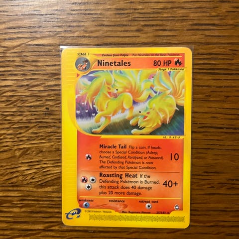 Tyydyttävässä kunnossa oleva Ninetales kortti.