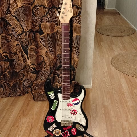 Yamaha sähkökitara, jokin sähkövika on ja pieni e kieli on katkennut.