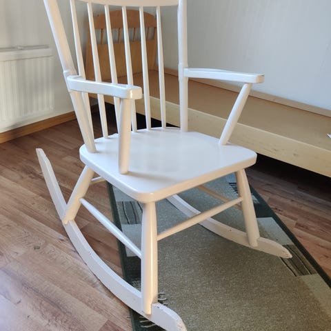 Puinen keinuva keltainen keinutuoli