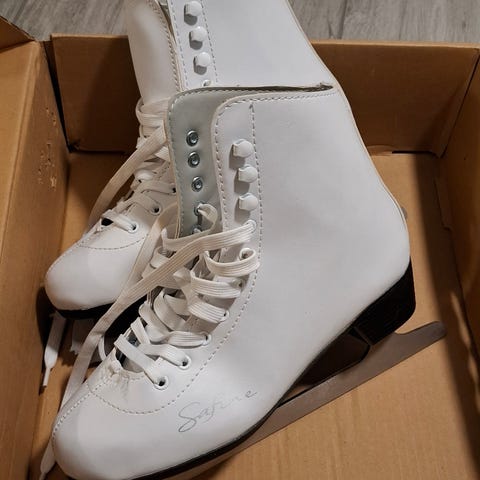 Valkoiset Jackson ultima 500 taitoluistimet mark II -terällä. Koko 41 eli 9. Perheen taitoluisteluharrastus loppui ja nämä jäivät käyttämättä ja vastaavat uusia. Ne on valmiiksi teroitettu taitoluisteluliikkeessä. Voin postittaa.