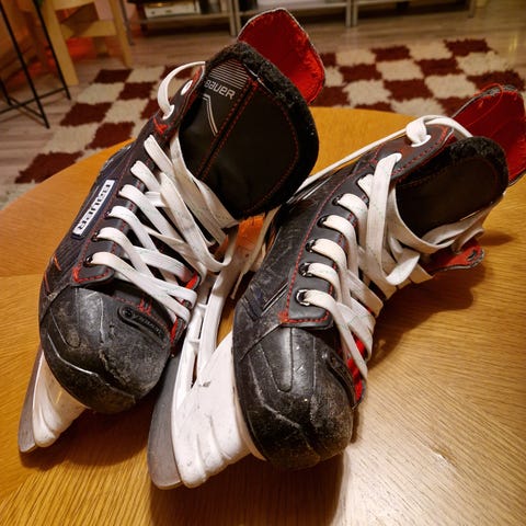 Myydään 3 talvea käytetyt Bauer Vapor -luistimet (koko 35) sekä Reebok-lätkähanskat yhdessä hintaan 25 €.