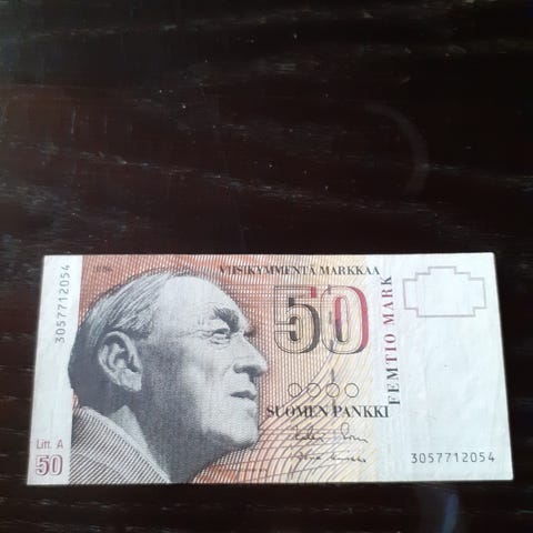 Viiskymmentä penniä Suomen raha, ruskea väri, paperimateriaali. Vanha suomalainen mainos-/kampanjakuponki ‘50 penniä’, todennäköisesti 1960–70-luvulta. Ei oikea seteli. Kunto kuvien mukainen.