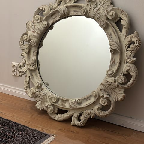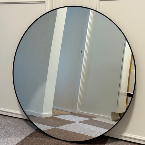 pyöreä peili mustalla kehyksellä, halkaisija 85cm.