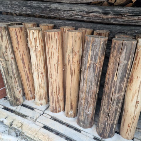 2 taatusti kuivaa jätkänkynttilää - olleet ullakolla jemmassa vuodesta 2010 (lumi pinnassa sieltä alas heittämisen vuoksi). Halkaisija vajaat 20 cm ja korkeus noin 60 cm.