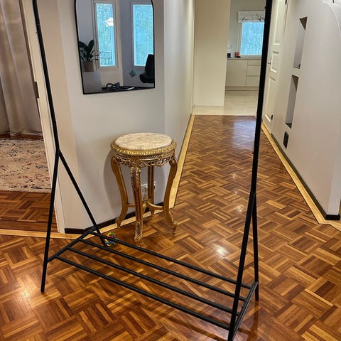 Musta vaaterekki joka sopii tilaan, joka vaatii pienemmän ratkaisun!