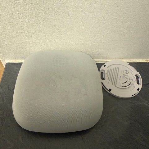 2kpl Harri Koskisen (esim. Genelec) suunnittelemia palovaroittimia. Toisessa pinnassa lievä värjäymä (raitaa).