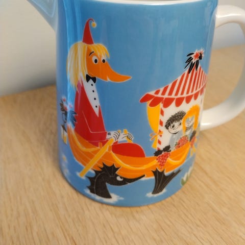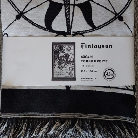 Finlaysonin Muumi taapero peitto jossa on röyhelöiset reunat ja muumihahmojen kuvia. Koko n . 93x84cm. Vintage sopii hyvin vaunupeittona tai lattialla myöhemmin konttaus alustana.