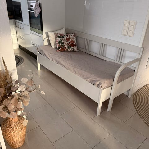 Vuode/laverisohva. Sohvan runko hyvässä kunnossa. Istuin patjaa syönyt kääntöpuolelta koira.