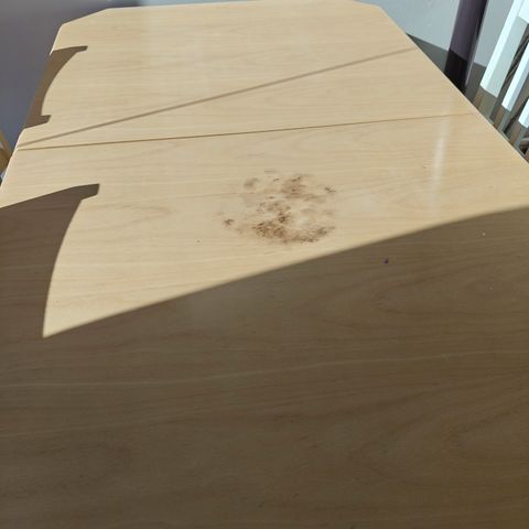 Pyöreä puinen ruokapöytä mustilla jaloilla
