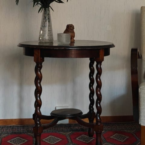 Myydään klassinen, antiikkityylinen kukkakuvioitu sivupöytä. Kannessa pieniä naarmuja ja haalistumaa. Nouto Hervannasta.