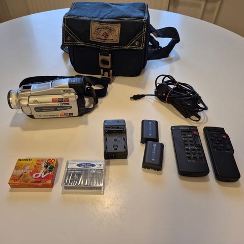 Akkuja ei ole, mutta laturissa akkuadapteri, jolla saa laitteen sähköihin. Mukaan myös firewire kortti tietokoneeseen (ei tietoa toimivuudesta nyky-windowsien kanssa.