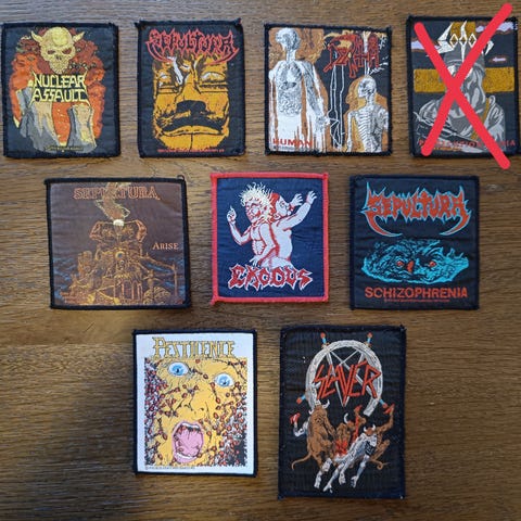 Myydään seuraavat merkit ja pinssit. Suurinta osaa käytetty takeissa, mutta lyhyitä aikoja koska merkkejä on aikanaan vaihdeltu tiuhaan tahtiin. Kaikki aitoja, paitsi kaksi peste noiren merkkiä, nämä ilmoitettu kuvissa. Tarjoa köntsästä joku summa!