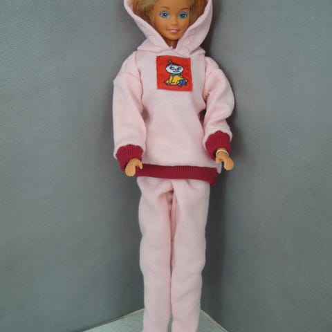 Uusia, käsintehtyjä vintage-tyylisiä barbin vaatteita. Vaatteet kestävät leikkiä ja väljempinä helpompia pienen leikkijän pukea kuin aidot barbien asut. Sopivat n.29.cm nukeille, myös retro-barbeille. Savuton, homeeton ja eläimetön talous. Kuvien barbie nuket eivät ole myynnissä! Hinta 7e/asu/kuva (+postimerkki).