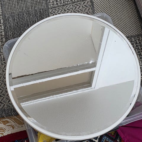 Pyöreä Rustan peili, pyöreä muotoinen peili. Peilin takana on kiinnitys ripustamista varten. Väri musta. Sopii seinälle ripustettavaksi esimerkiksi makuuhuoneeseen tai eteiseen.