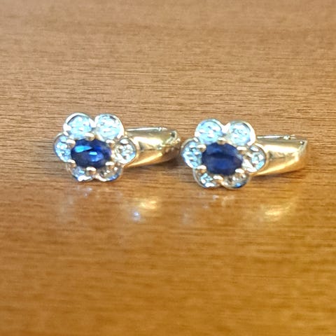 Kultaiset Diana korvikset 14k, sis. hiukan valkokultaa, timanteilla ja sinisafiireilla, vähän käytetyt. Paino noin 2 grammaa. Hp. 250€/tarjous. Nouto Kouvolan keskustasta tai postitus onnistuu.