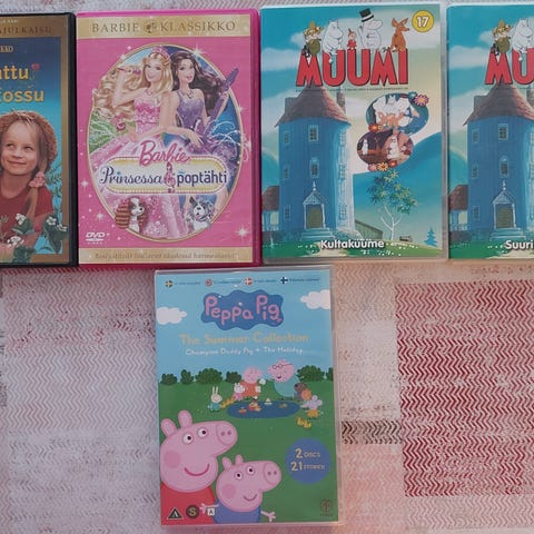 Myydään kaapissa lojuneet peppi pitkätossu dvd elokuvat, muumeja muutama jakso (yksi vanhoilla äänillä, loput uusilla) ja yksi blu-ray elokuva. Toiminnasta ei varmuutta, ei kokeiltu tosiaan vuosiin. Levyt näytti olevan ehjiä, ei naarmuja. Nouto lempäälä.