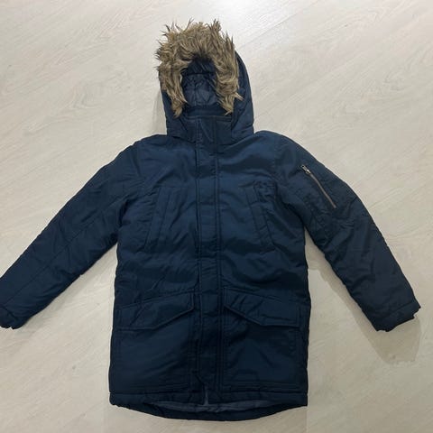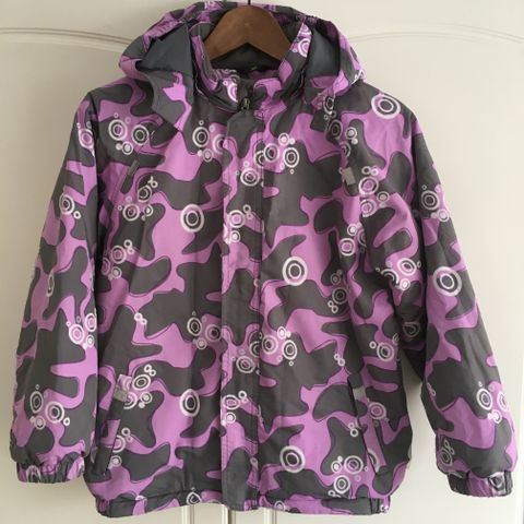 Kirjava metsä-aiheinen toppatakki lapselle. Merkki Motion's. Koko 140cm. Väreinä ruskea/turkoosi/oranssi/harmaa. Melko paksu. Kankaista ehjä. Ainoa miinus oikeastaan että vetoketjuläpän sisäpuolen velcro-tarrat eivät enää ihan uudenveroiset, mutta kaikki kolme niistäkin edelleen pysyvät paikoillaan. Irroitettava huppu. Ei nimikoitu. Pesty.