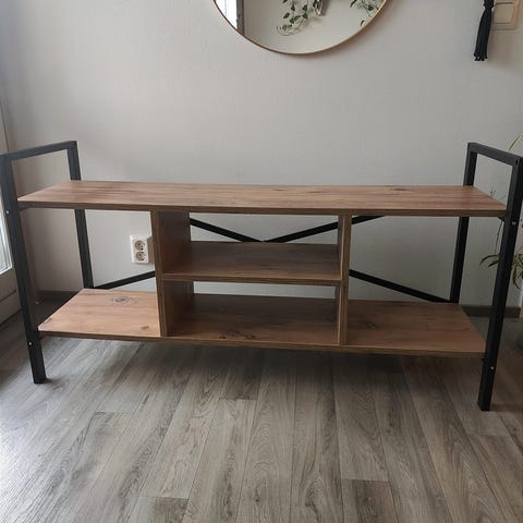Mustaksi kalustemaalilla maalattu TV-taso tarvitsisi uuden kodin.