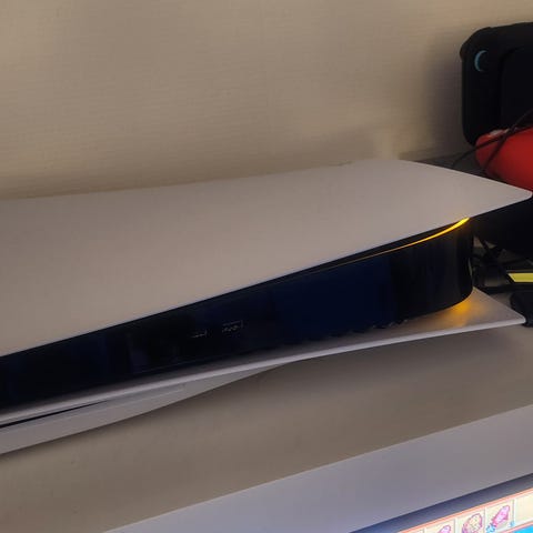 Sony PlayStation 5 Slim pelikonsoli levyasemalla.