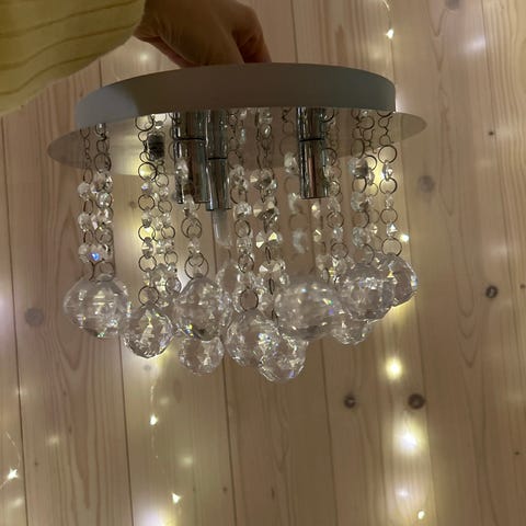 Kirkkaita ja vaalean liiloja koriste"kristalleja".