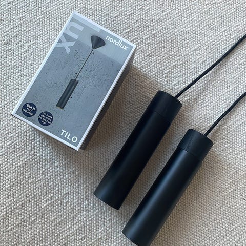 Kaksi Nordlux Alton riippuvalaisinta, joissa savunharmaa lasikupu.