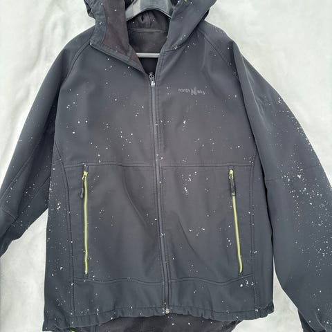 Musta ulkoilutakki, kevyt vuori, koko XL, suht lyhyt malli, siisti takki.