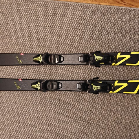 Hiukan käytön jälkeä. Lasten fischer laskettelusukset.