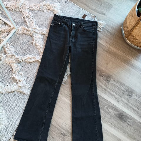 Nuorten bootcut farkut, koko 36. Ostettu Gina Tricotista. Lahkeet hieman kuluneet käytössä muuten käyttö ei näy. Tumman harmaat.