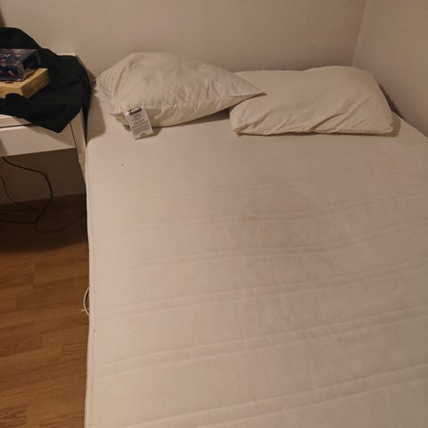 Hyväkuntoinen noin 2v vanha 120cm leveä runkopatjasänky. Ilman petauspatjaa tai petauspatjalla.
