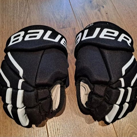 Bauer Vapor X600 jääkiekkohanskat, koko 25 cm. Väri musta ja valkoinen. Soveltuvat jääkiekkokäyttöön, tarjoavat suojaa ja liikkuvuutta kädelle.