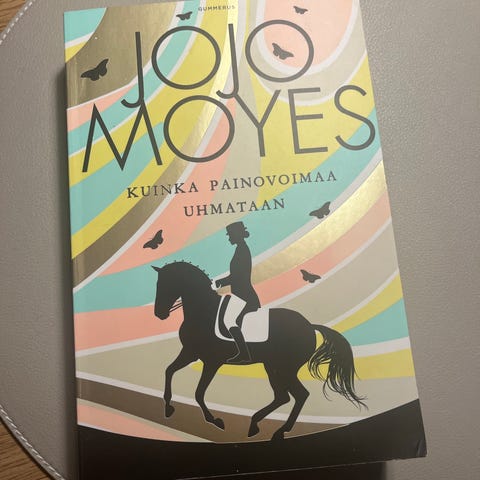 Jojo Moyesin "Kuinka painovoimaa uhmataan" kirja. Hyvässä kunnossa. Yhdellä sivulla on kirjoitus jonka saa kumittamalla varmaan pois. Saa tarjota