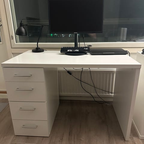 Ikean Trotten merkkinen työpöytä. N. 5 vuotta vanha. Halpa hinta, koska vain nouto ja hakijalla on oltava oma kantoapu. Pöytä ei ole säädettävä eli ei pysty seisomaan esim. tehdessä töitä.