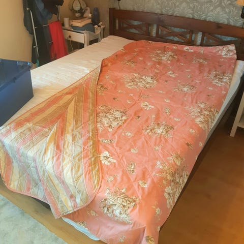 Myydään kaunis, tikattu 2-puoleinen päiväpeitto.