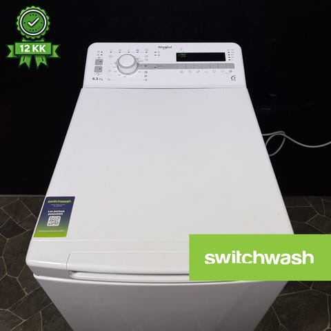 Hyväkuntoinen Whirlpoolin päältä täytettävä pesukone, jossa monipuoliset pesuohjelmat jokaiseen tarpeeseen.