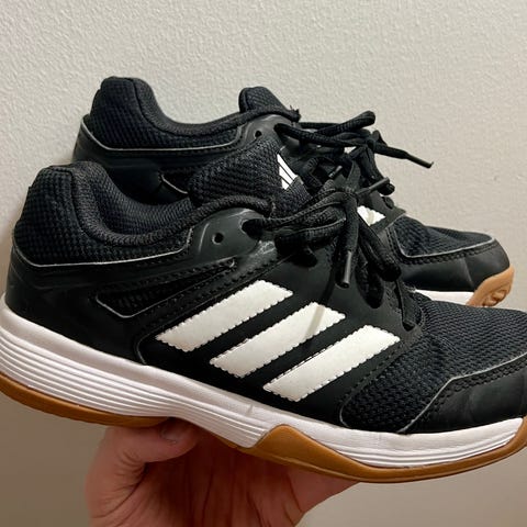 Adidas Ligra 7 -sisäpelikenkä värissä Cloud White / Core Black, jossa on hengittävä verkkopäällinen ja Adiwear-ulkopohja.