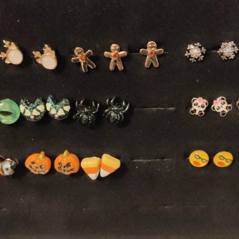 Suomesta ostettuja, osa pienyrittäjältä, osa Ninjasta tms suomikoruliikkeestä. Hopeanväriset vähän tummuneet. Muutama taustastopperi saattaa puutua.