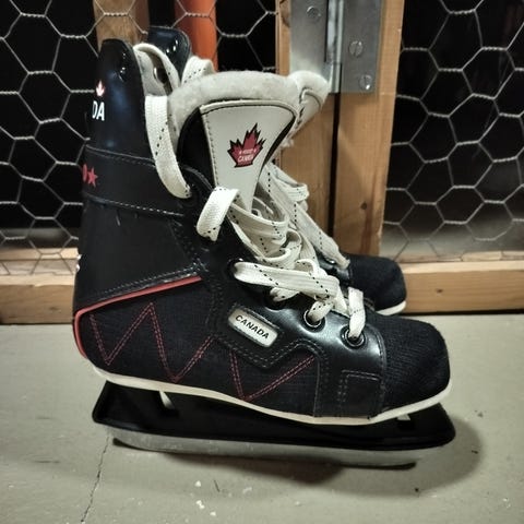 Alkuvuonna 2025 ostetut luistimet, joita on käytetty muutama kerta. Nyt jääneet pieneksi.