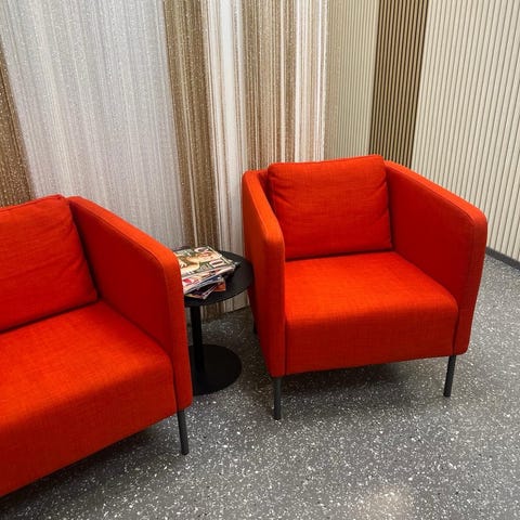 Kaksi vihreää verhoiltua nojatuolia, joissa pehmeät käsinojat ja muhkea istuinosa. Sopii olohuoneeseen tai muuhun oleskelutilaan.