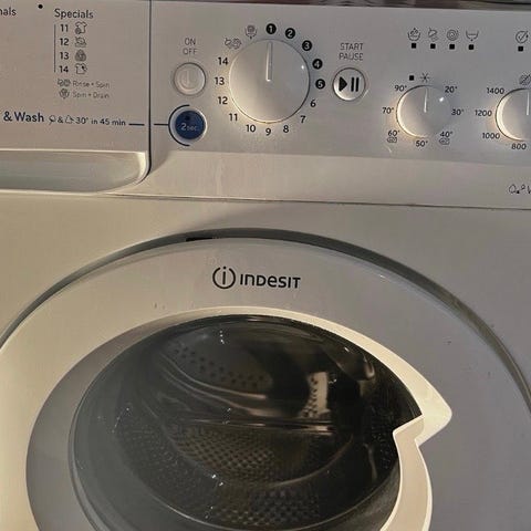 Toimiva pyykinpesukone noudettavissa rivitalosta. Ei rappuja. Etukulmassa halkeama, mutta ei ole vaikuttanut toimivuuteen. Annetaan muuton takia.