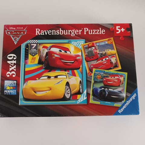 Ravensburger Cars palapeli sisältää kolme erilaista palapeliä, joissa on 25, 36 ja 49 palaa. Palapelit ovat tarkoitettu yli 4-vuotiaille lapsille.