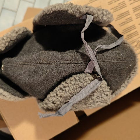 Harmaa SA-INT karvalakki, koko 59. Toisen läpän nauha irronnut elikkä korjausta vaatii jos haluaa täydellisen