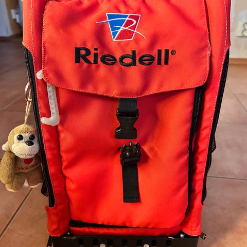 Käytetyssä kunnossa ja kulumaa näkyy monessakin kohtaa, mutta hyvin käyttökelpoinen laukku vielä luistelijalle.