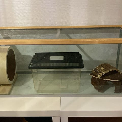 Lasinen terraario 80x40x35 (noin 112 litraa) ja tarvikkeita